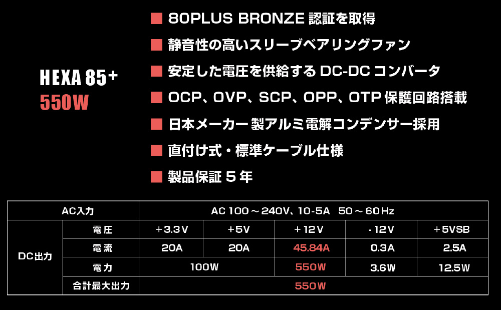 PC電源 HEXA 85+ ブラック HA550 [550W /ATX /Bronze]