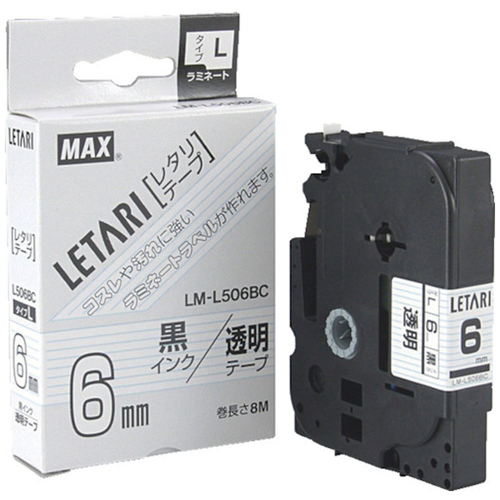 MAX ビーポップミニ用ラミネートテープ LM−L506BC 透明×黒文字 6mm幅×8m巻 LML506BC