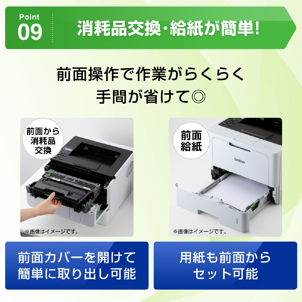 ■消耗品の交換や用紙の補充が前面から操作可能