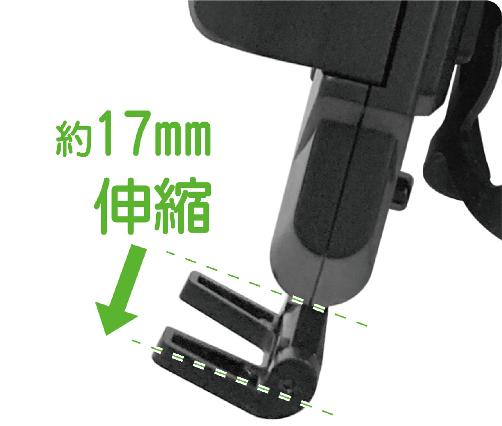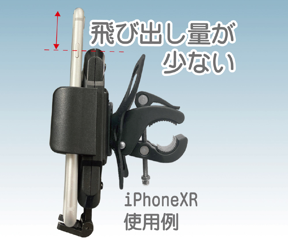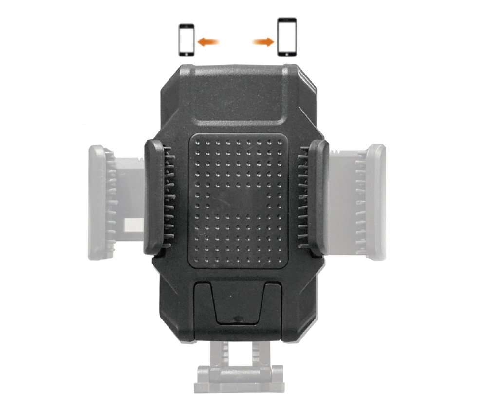 ●確実な固定力を持つ大型クランプ採用、シリコンバンドとの併用で大切なスマホを、しっかりと保持します。