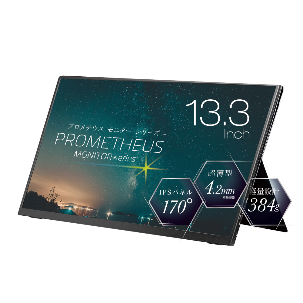 USB-C接続 PCモニター PROMETHEUS MONITOR ブラック UQ-PM13FHDNT-GL [13.3型 /フルHD(1920×1080) /ワイド]