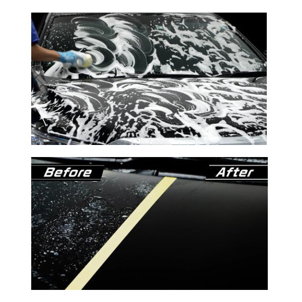 ファインセラミックパウダーとキレート剤のWの効果で、ボディの雨ジミ・垂れスジ、ガラスの油膜・しつこい汚れをこれ一本で徹底洗浄!2WAYのカーシャンプーです!