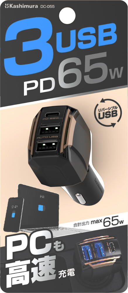 商品名 DC-65W USB 3ポート PD65W 自動判定 ブラック DC-055 [3ポート /USB Power Delivery対応]