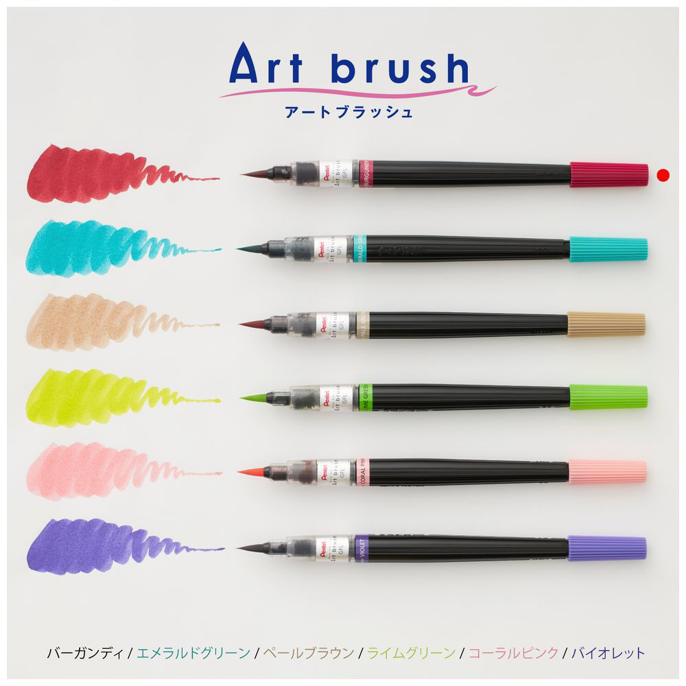「アートブラッシュ」には、混色では作りにくい絶妙なニュアンスを持つバーガンディ、エメラルドグリーン、ペールブラウン、