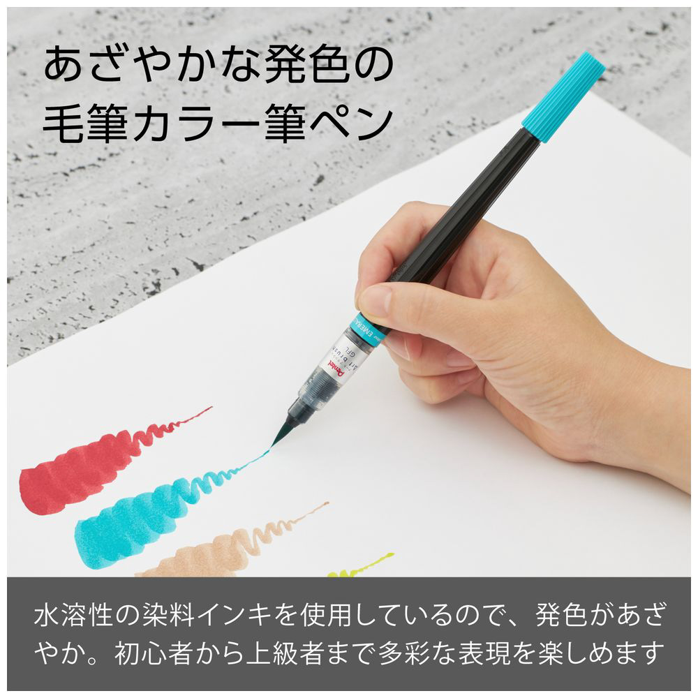 みずみずしく鮮やかな発色で、毛筆タイプならではの自由な表現ができるカラー筆。