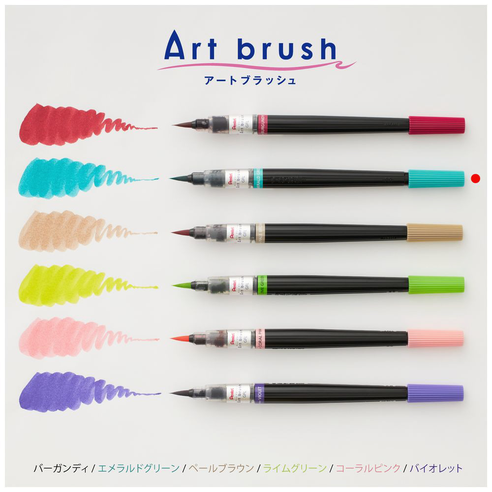 「アートブラッシュ」には、混色では作りにくい絶妙なニュアンスを持つバーガンディ、エメラルドグリーン、ペールブラウン、