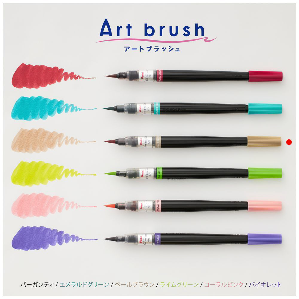 「アートブラッシュ」には、混色では作りにくい絶妙なニュアンスを持つバーガンディ、エメラルドグリーン、ペールブラウン、