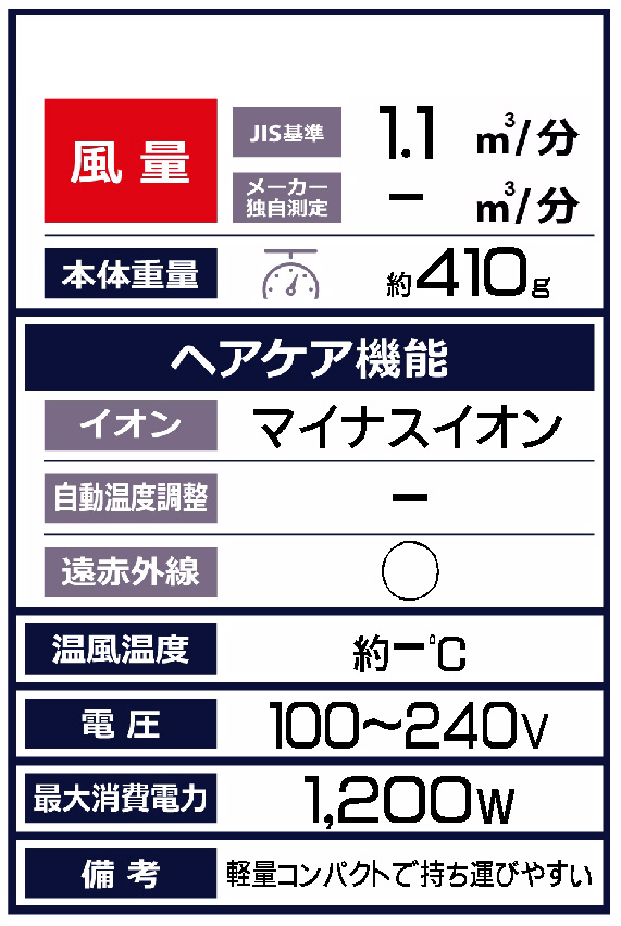 ツインマイナスイオン搭載の海外対応コンパクトモデル。