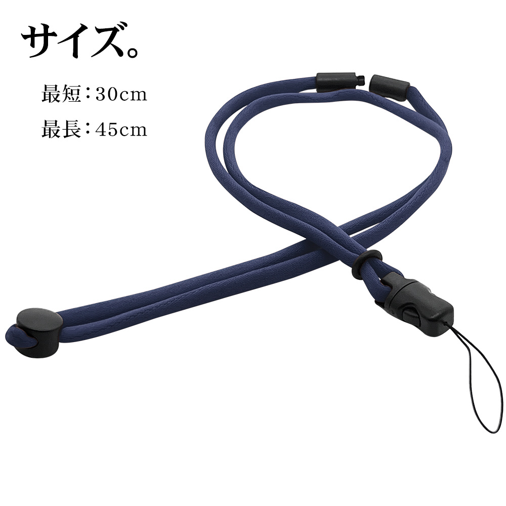丸紐ネックストラップ 長さ調節 安全パーツ付 ネイビー RNST04NV