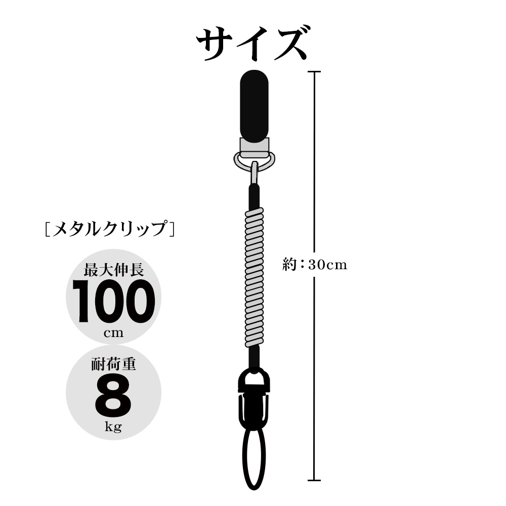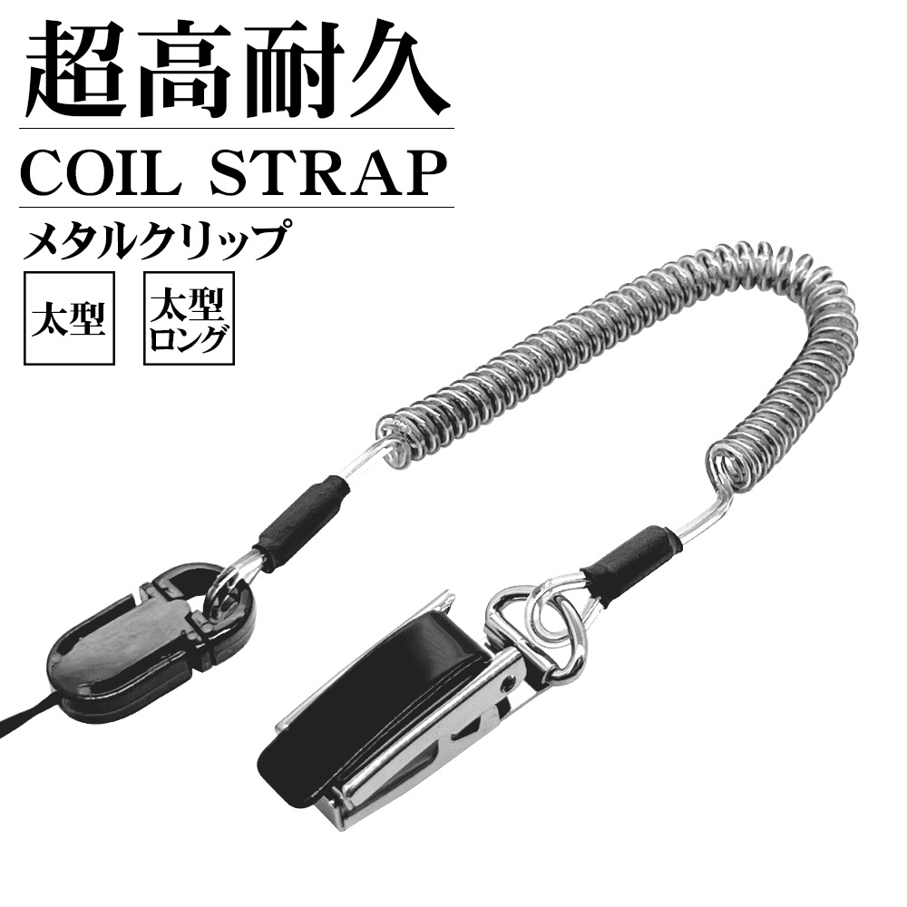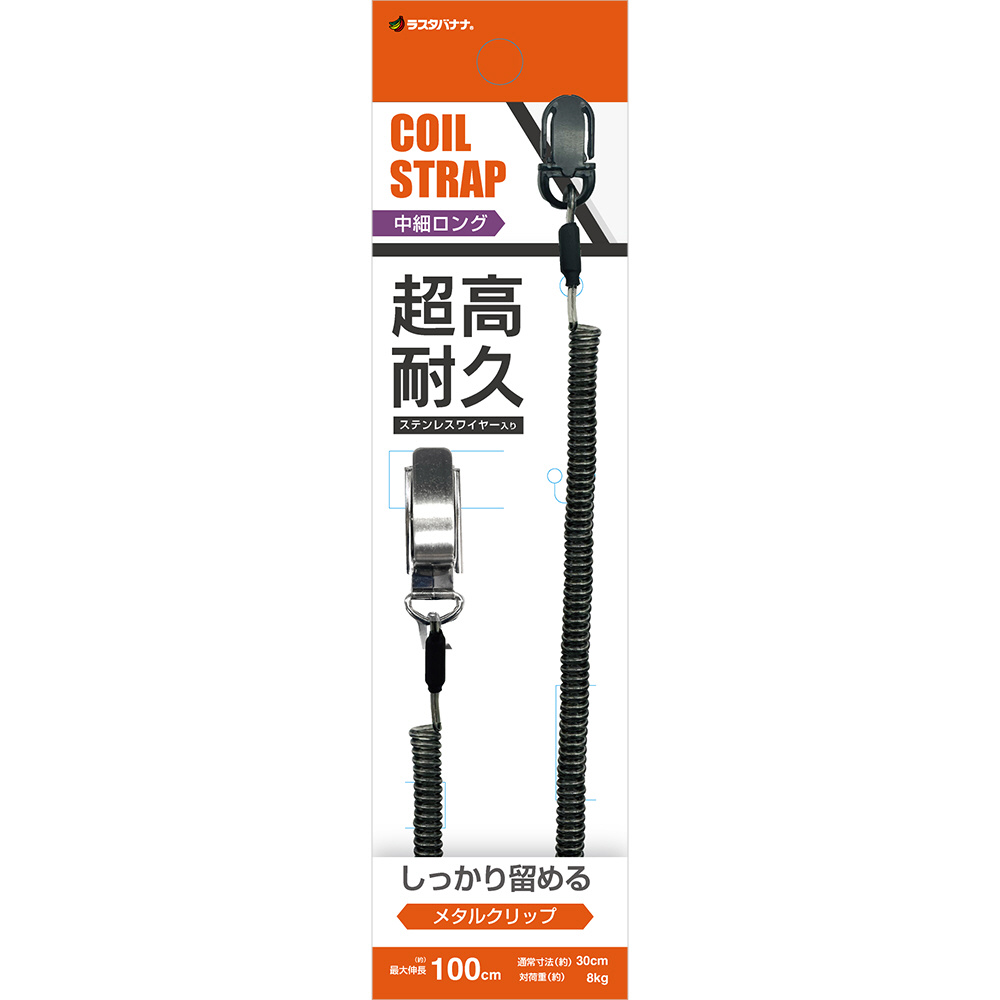商品名 ワイヤー入りコイルストラップ メタルクリップ ロング ブラック RCSTWM02BK