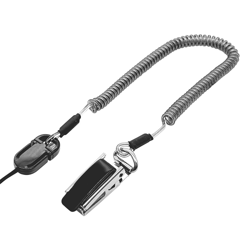 仕様3 伸縮するコイル状の樹脂コードの芯材にステンレスワイヤーを使用し、耐久性や強度に優れ、引っ張っても伸びたままになりません。