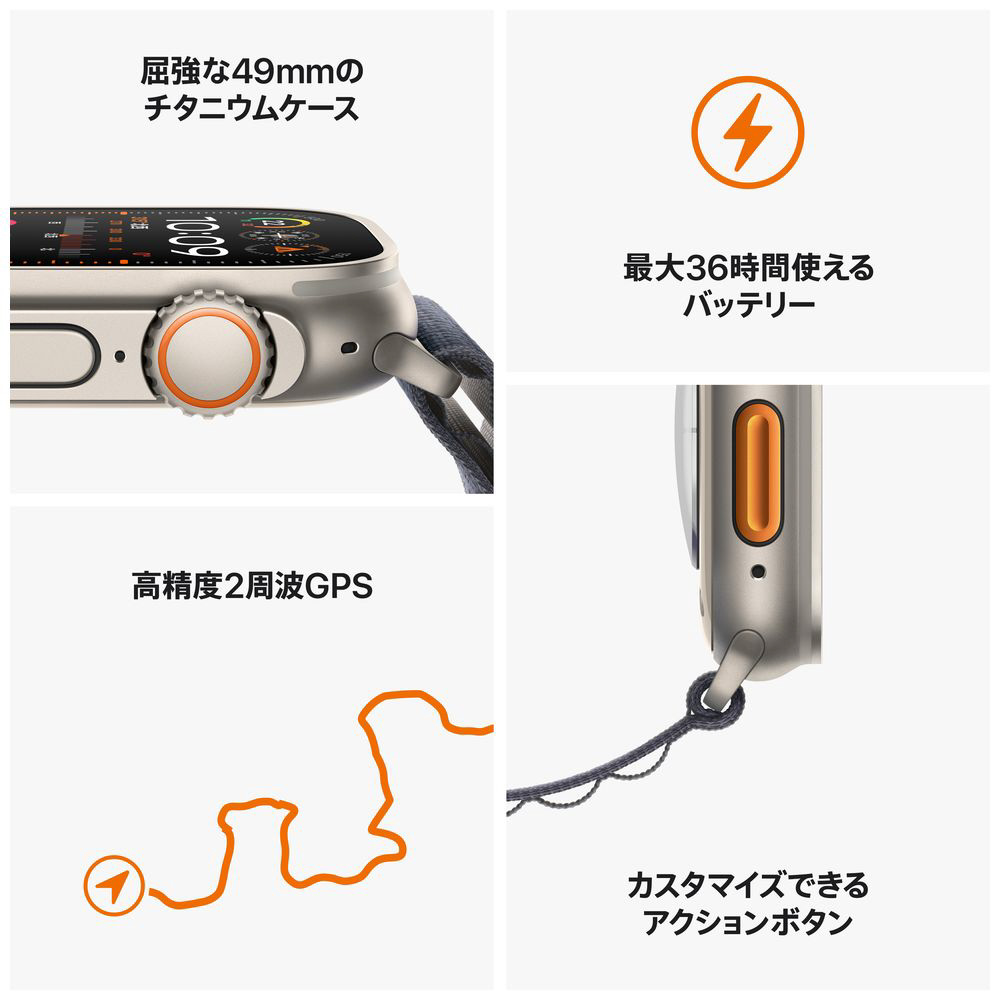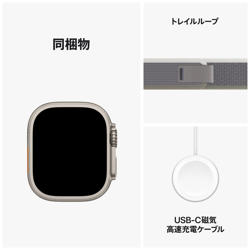 Apple Watch Ultra 2(GPS + Cellularモデル)- 49mmチタニウムケースとグリーン/グレイトレイルループ - S/M グリーン/グレイトレイルループ S/M MRF33J/A