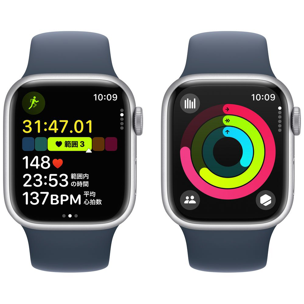 Apple Watch Series 9(GPSモデル)- 41mmシルバーアルミニウムケースとストームブルースポーツバンド - S/M シルバーアルミニウム MR903J/A