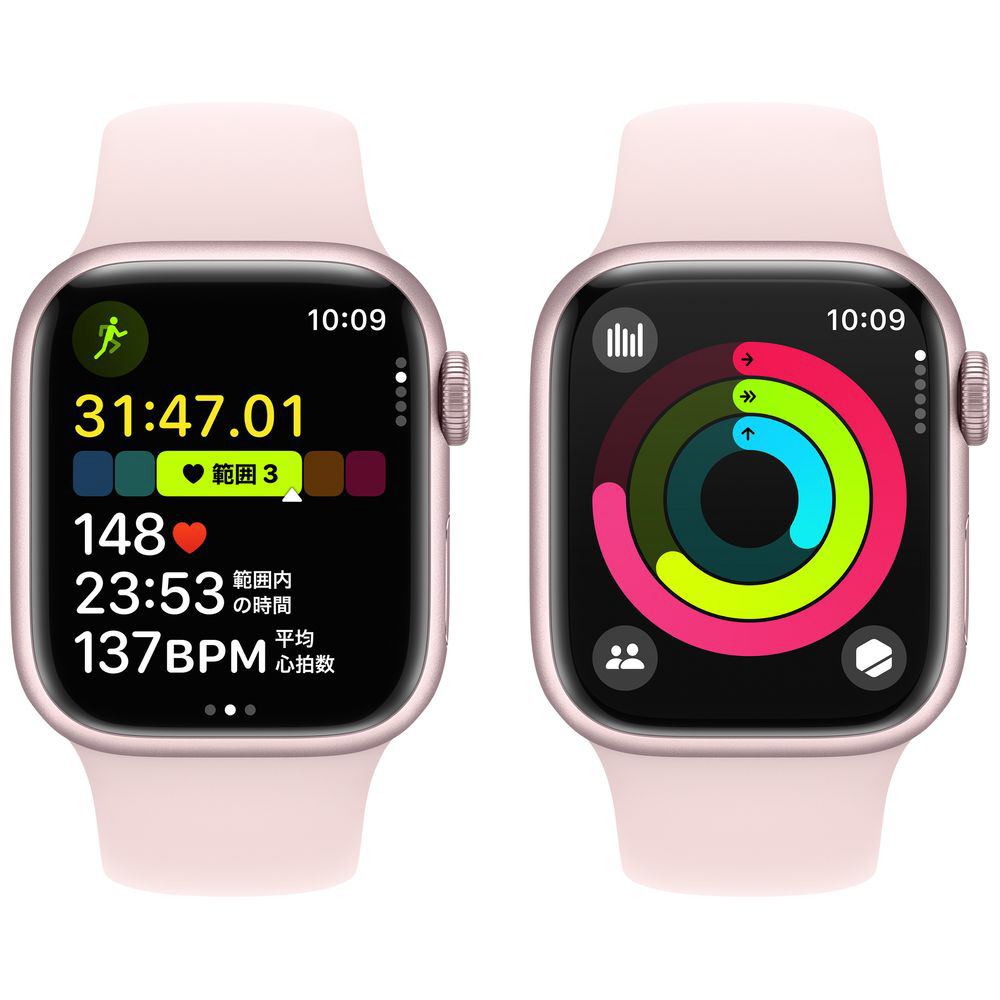 Apple Watch Series 9(GPSモデル)- 41mmピンクアルミニウムケースとライトピンクスポーツバンド - S/M ピンクアルミニウム MR933J/A