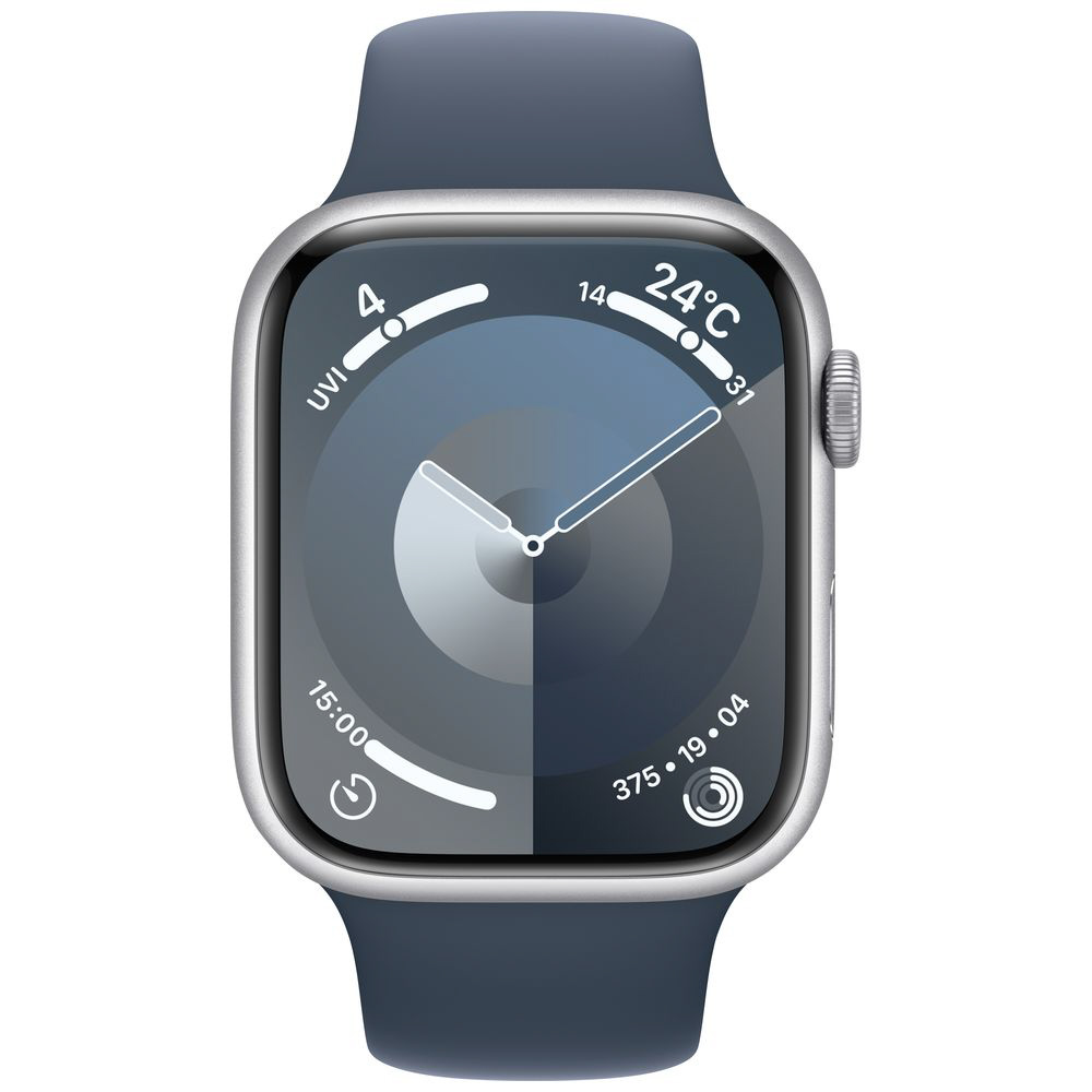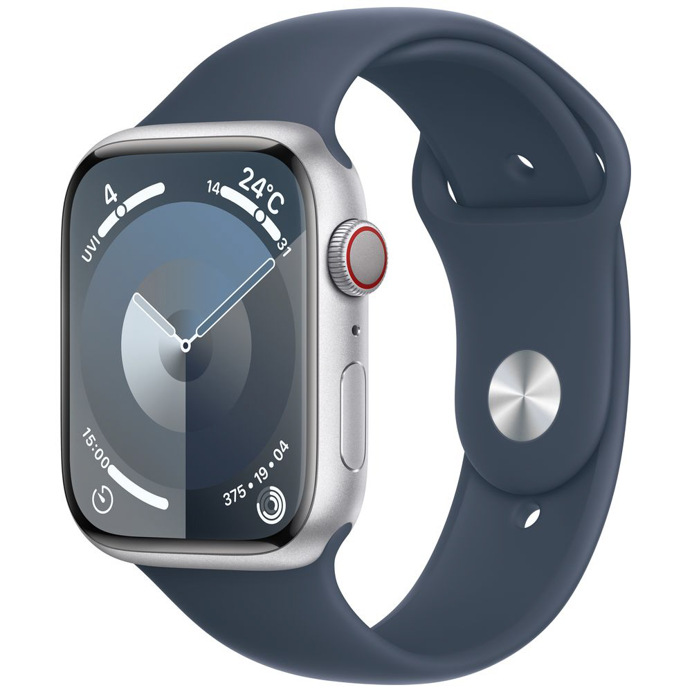 Apple Watch Series 9(GPS + Cellularモデル)- 45mmシルバーアルミニウムケースとストームブルースポーツバンド - S/M シルバーアルミニウム MRMG3J/A