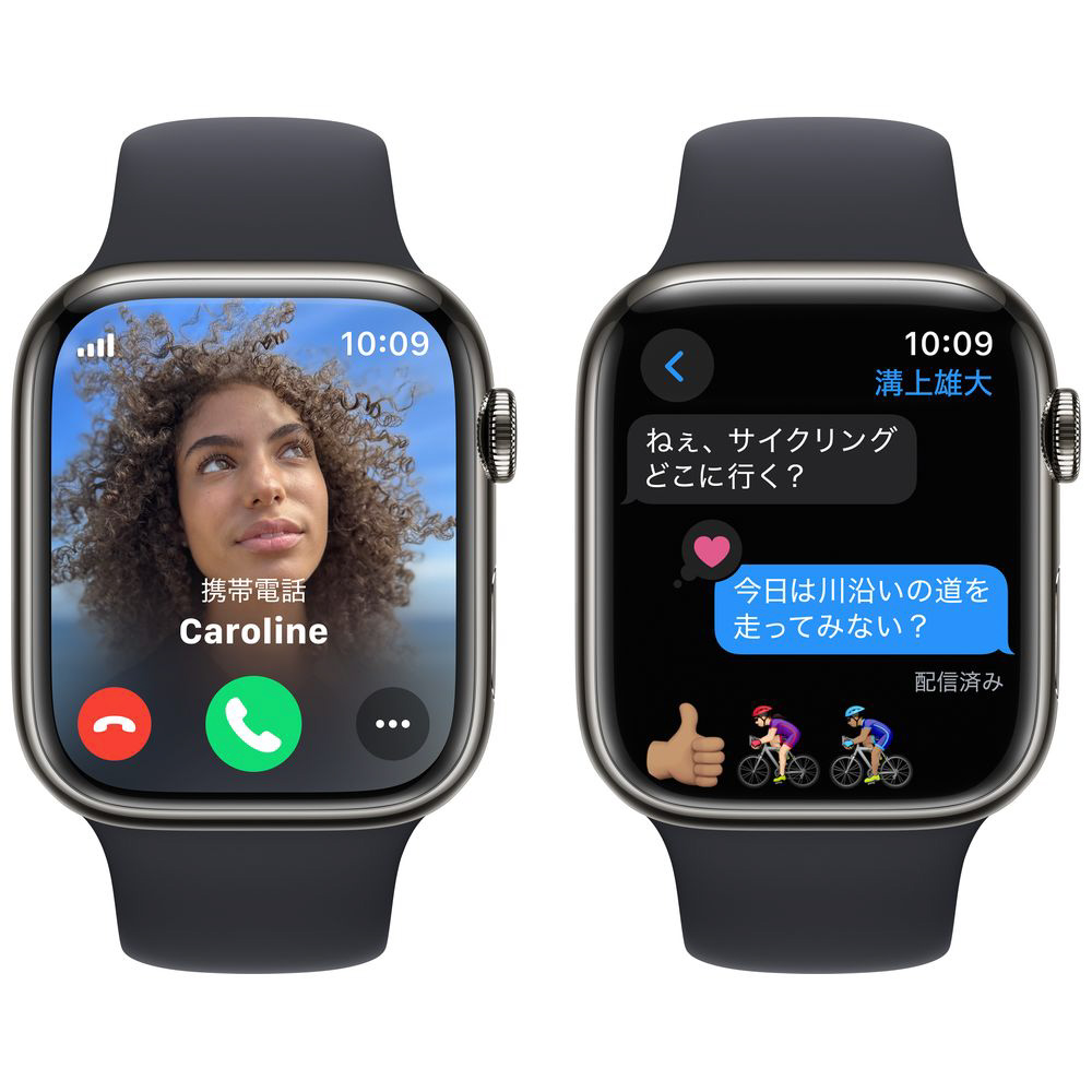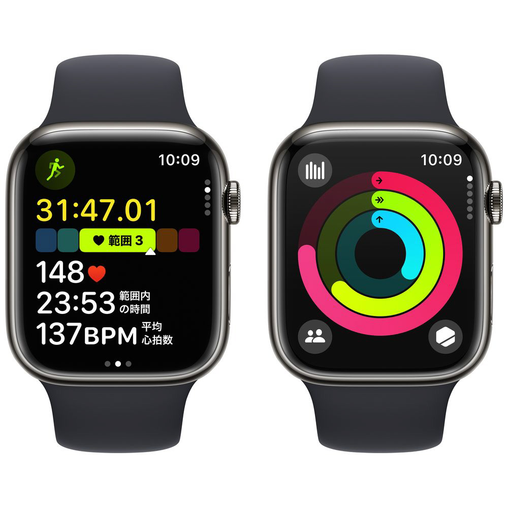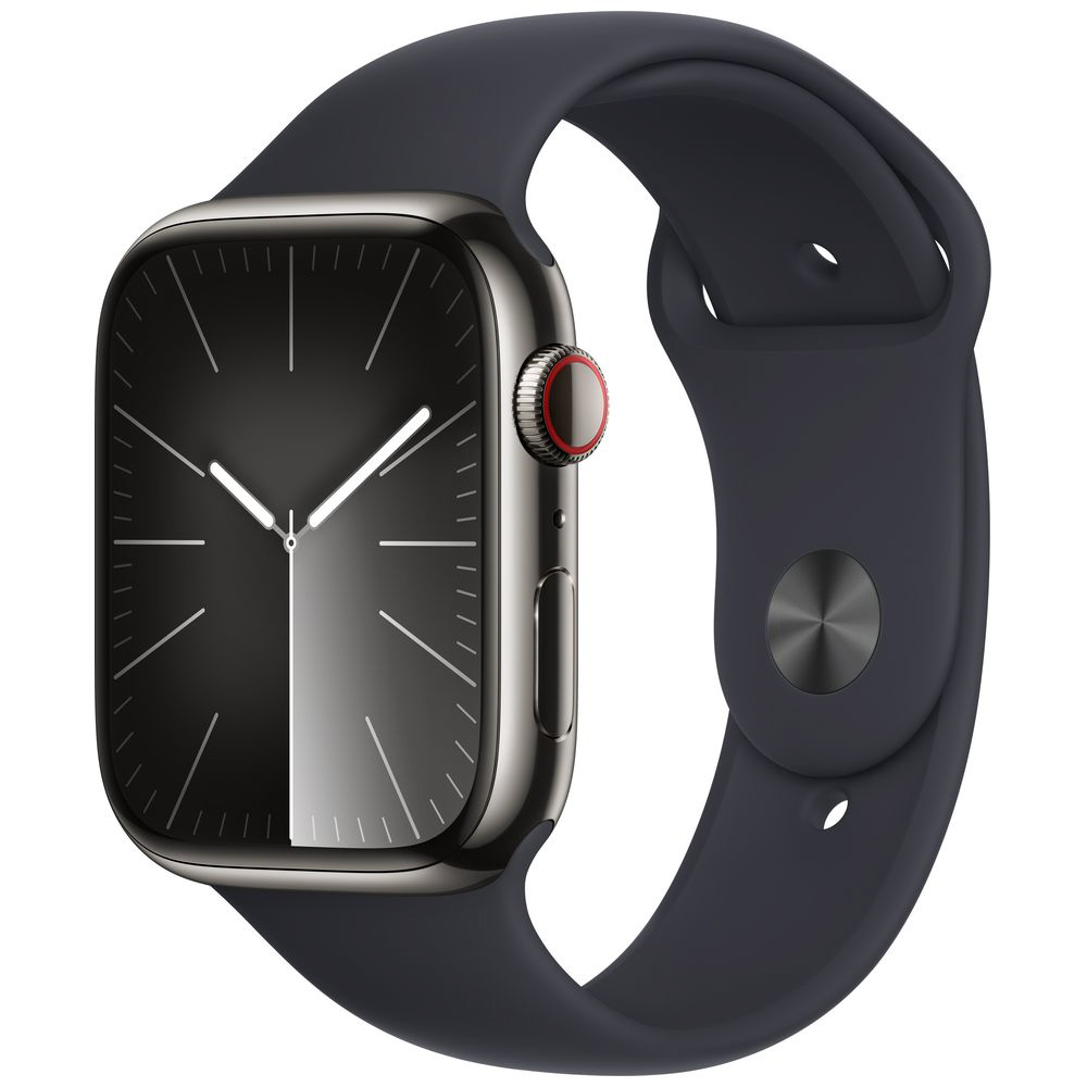 Apple Watch Series 9(GPS + Cellularモデル)- 45mmグラファイトステンレススチールケースとミッドナイトスポーツバンド - S/M グラファイトステンレススチール MRMV3J/A