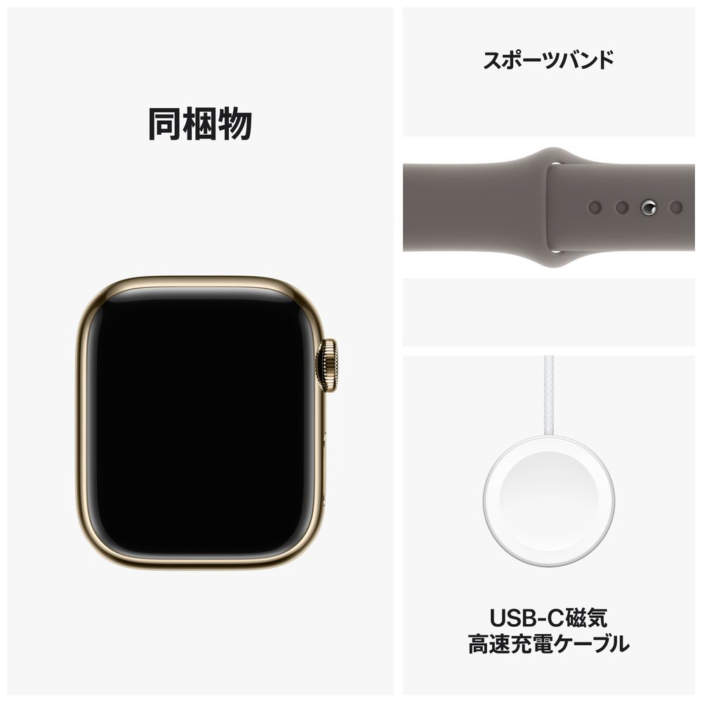 Apple Watch Series 9(GPS + Cellularモデル)- 41mmゴールドステンレススチールケースとクレイスポーツバンド - M/L ゴールドステンレススチール MRJ63J/A