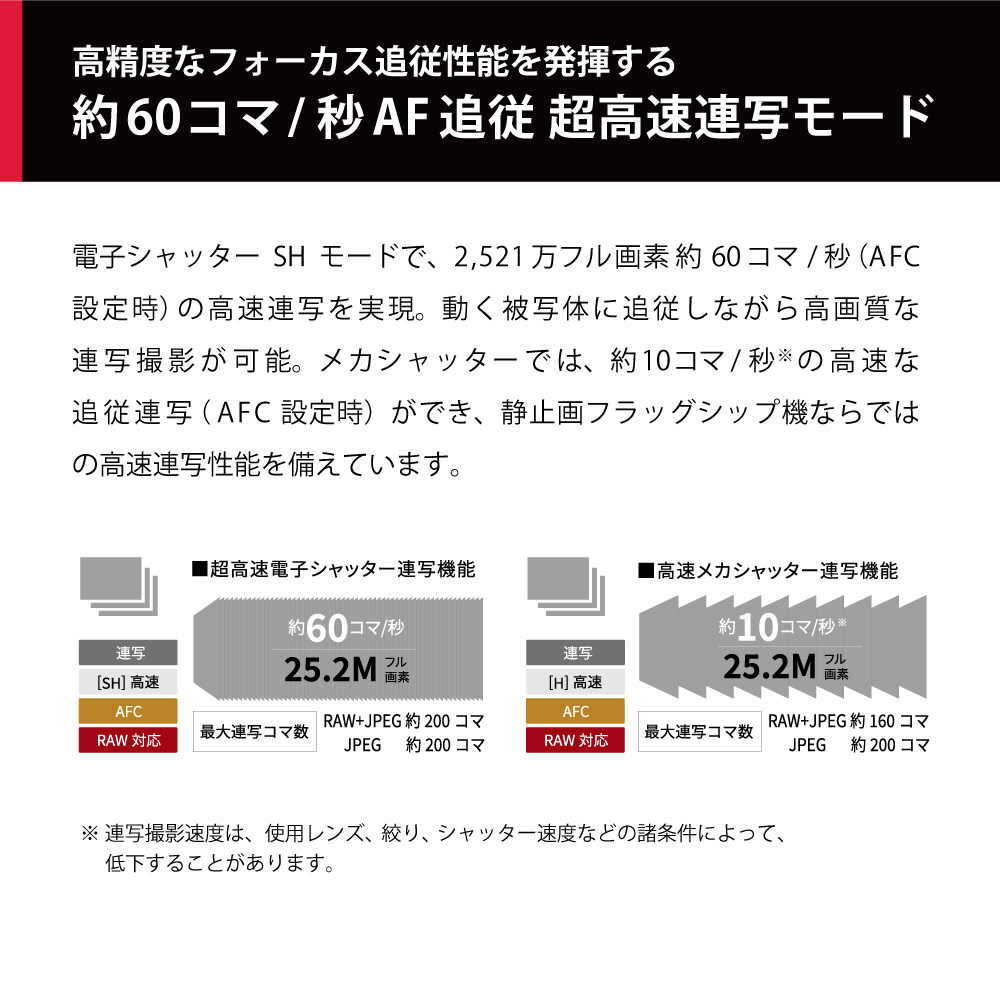 描写性能と表現力、高速レスポンスを両立し、進化した高速性能と機動力で狙った一瞬を逃さない静止画フラッグシップ一眼