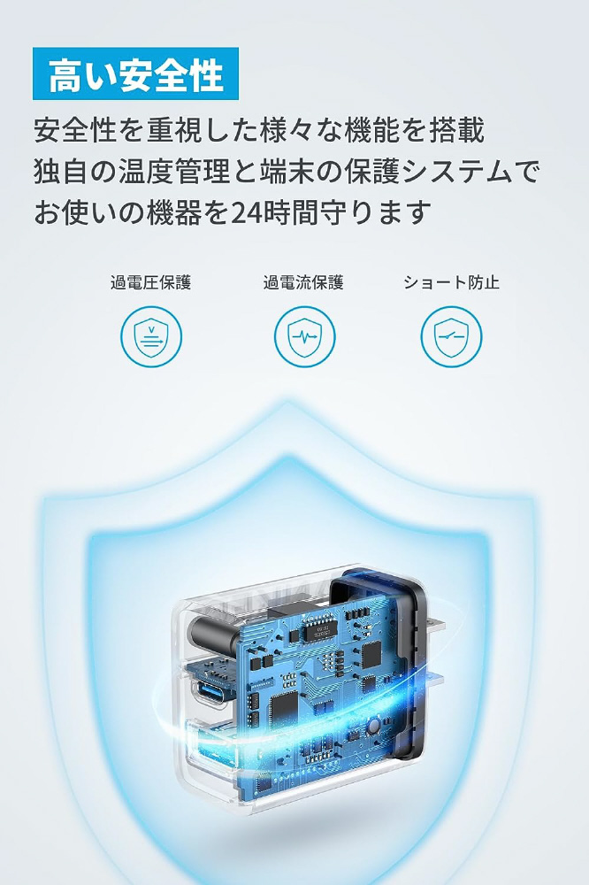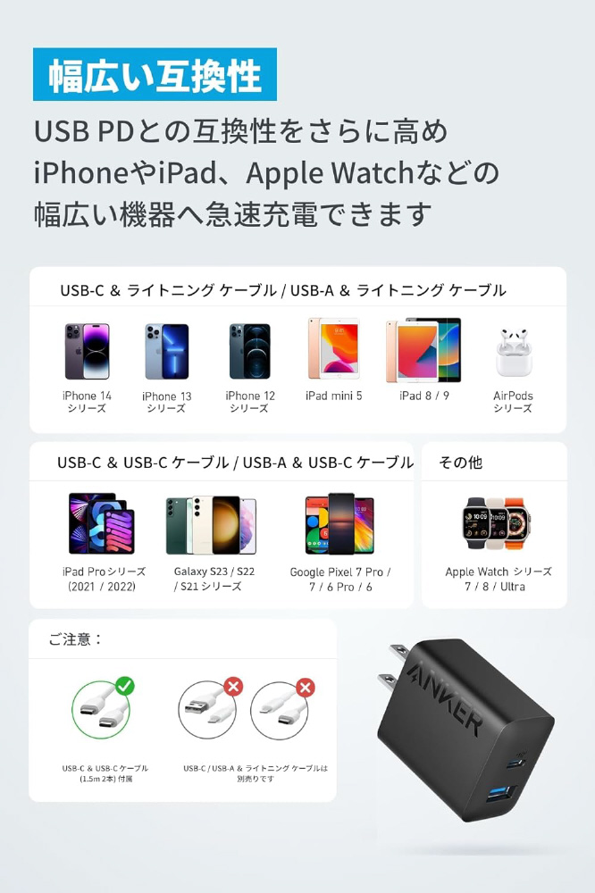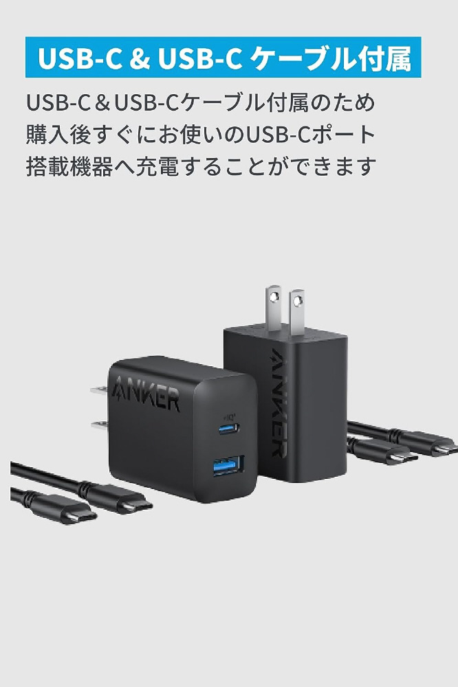 Anker Charger (20W、2-port) with USB-C & USB-C ケーブル ブラック B2348112 [USB Power Delivery対応 /2ポート /20W]