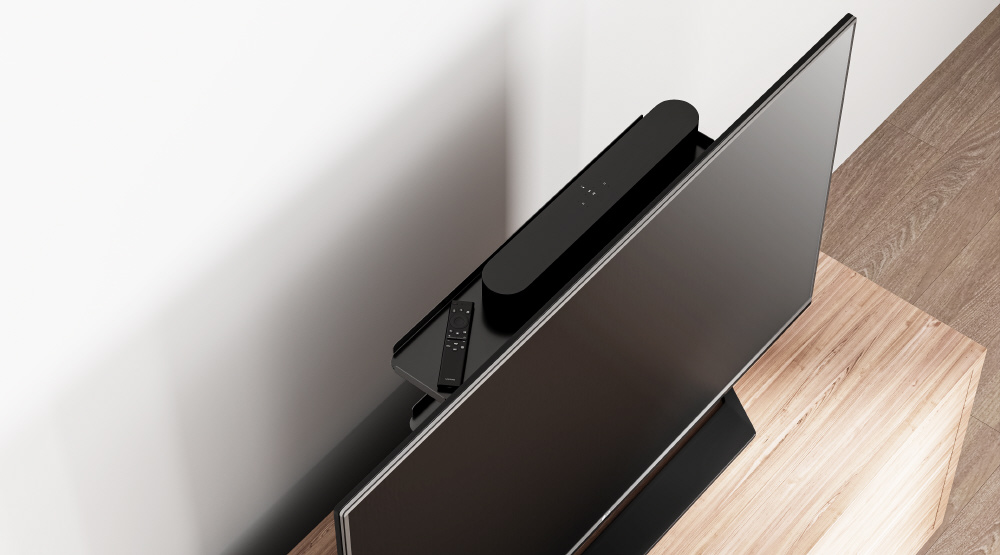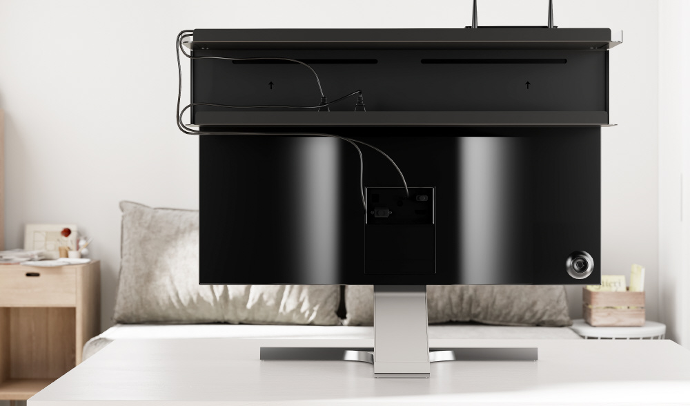 液晶テレビ背面のVESAマウントに取り付けられる背面ラック
