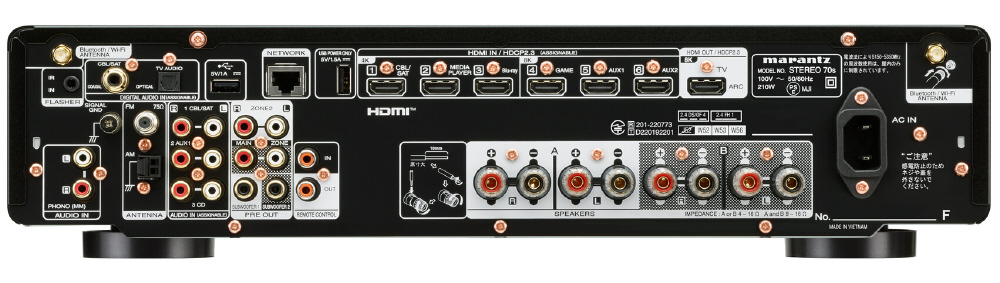 | 入力端子 | HDMI×6、アナログ×3、Phono(MM)×1、光デジタル×1、同軸デジタル×1 |