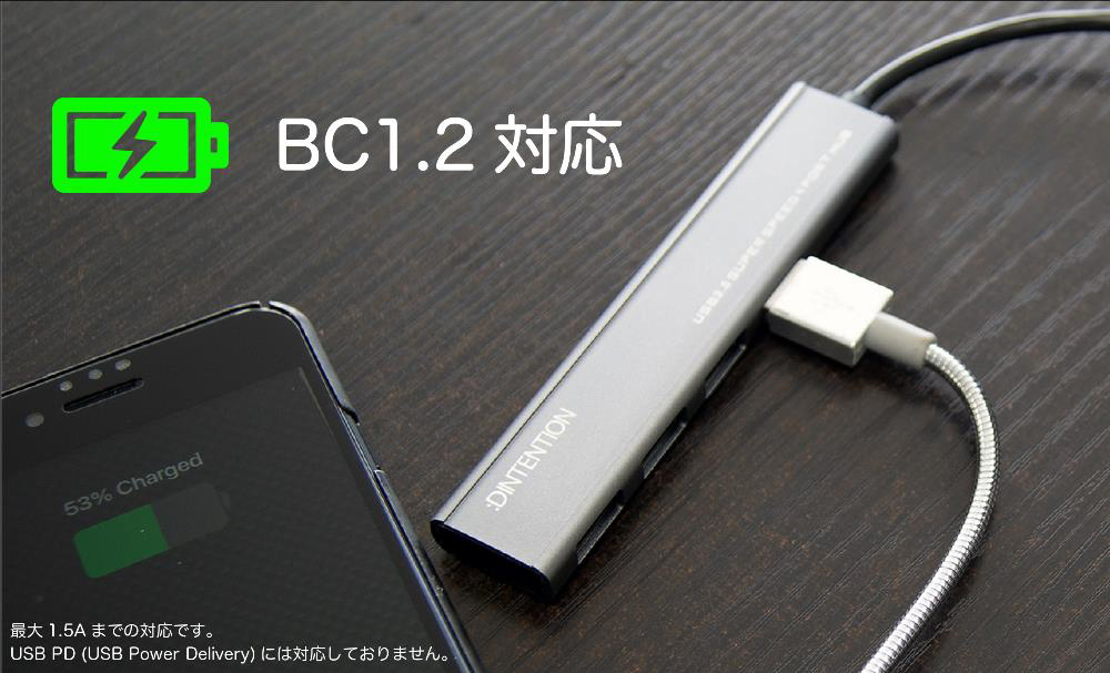 BC1.2 (Battery Charging)規格をサポート。※最大1.5Aまでの対応です