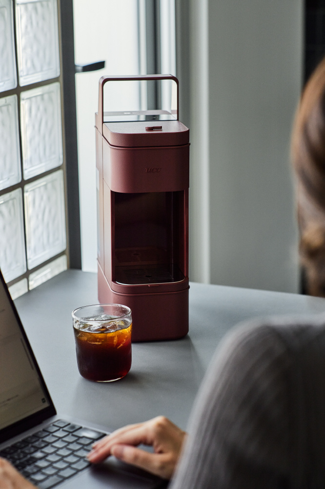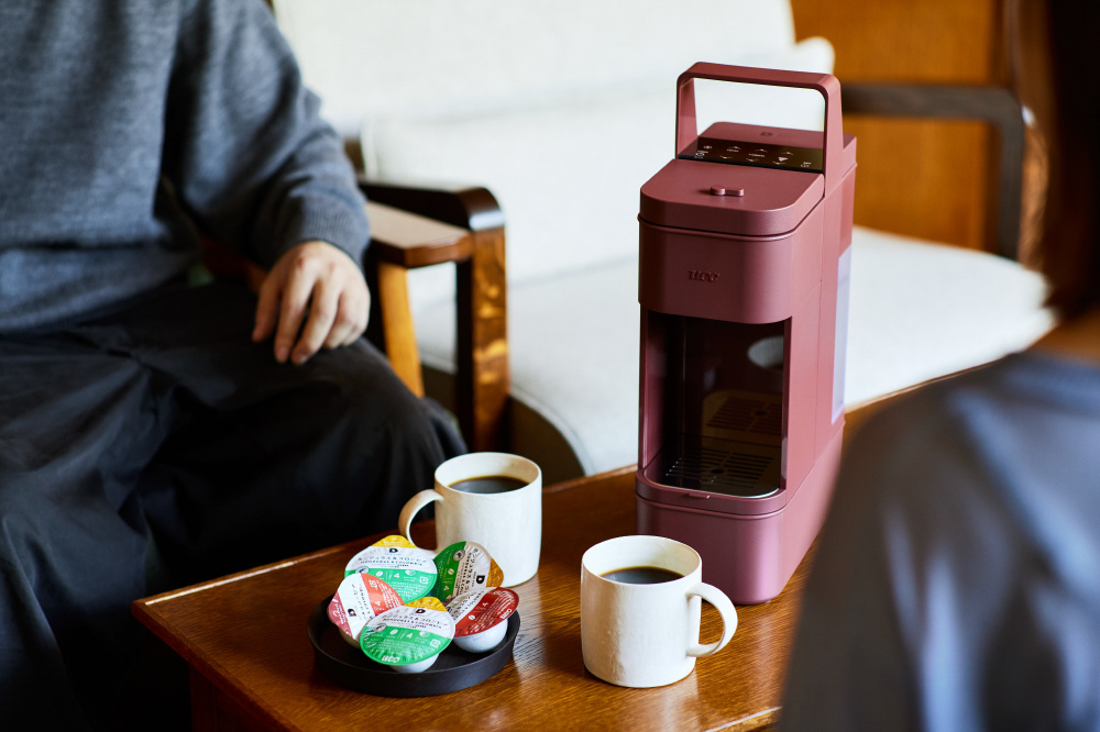 コーヒータイムをもっと自由に。UCCのアプリと連動することで抽出レシピを変更し、同じカプセルでもさまざまな味わいを楽しめる。/美しいデザインとキャリーハンドルで、コーヒーシーンがもっと広がる。
