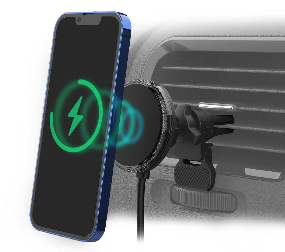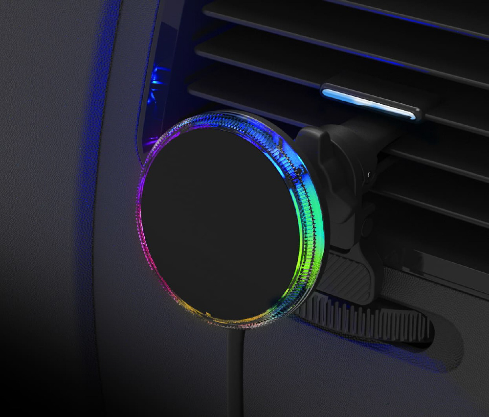 アンビエントライト付き マグネットワイヤレス充電器 エアコン取り付け KW-42