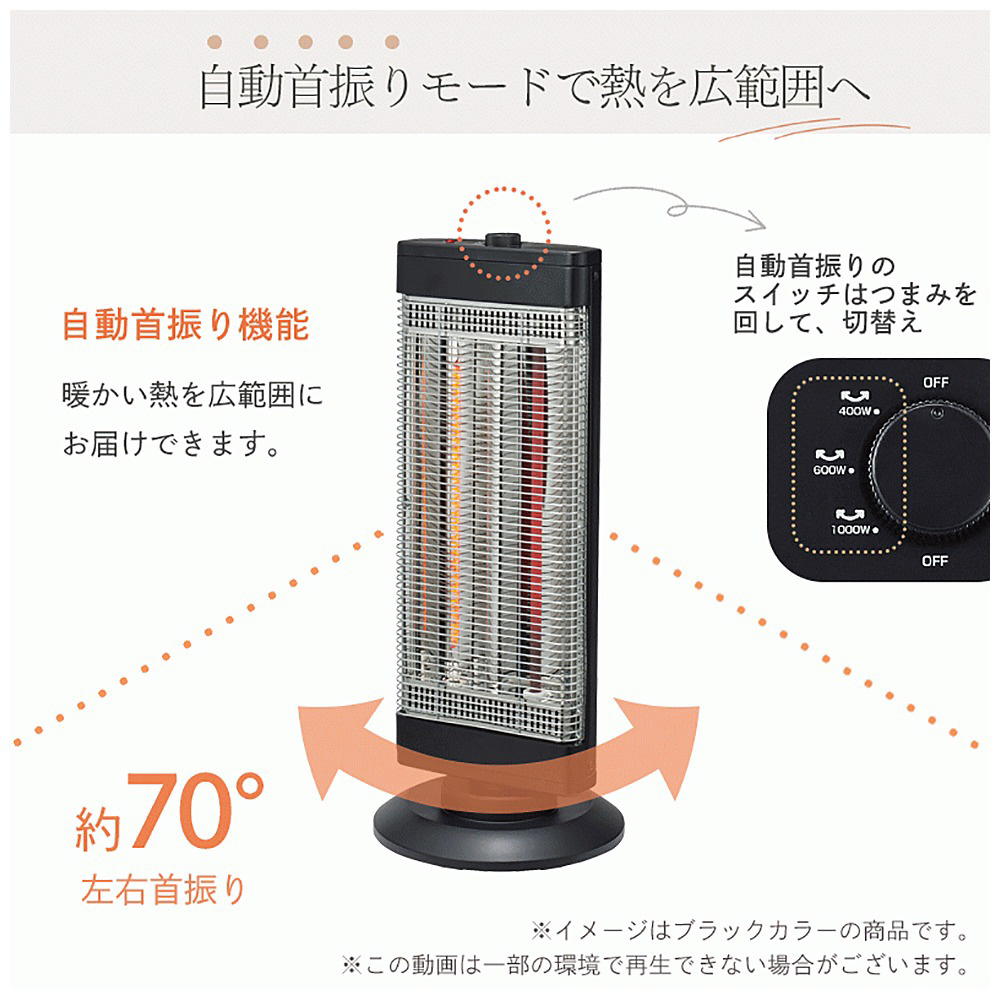 | 商品名 | ワイドカーボンヒーター YKT-CS1000E-K [カーボンヒーター・シーズヒーター /人感センサーなし /首振り機能] |