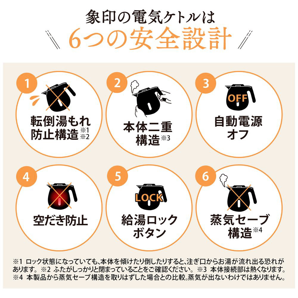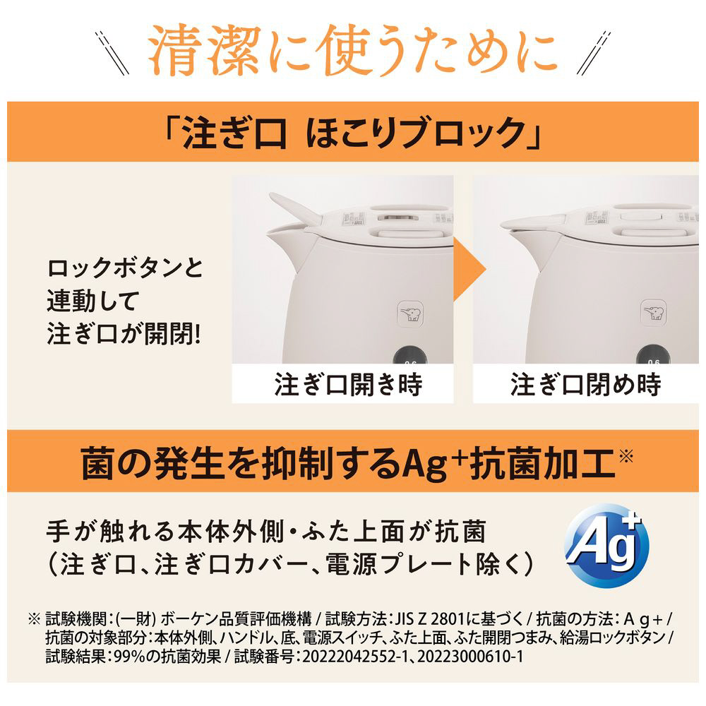 Ag+抗菌加工で清潔、安全機能も充実した電気ケトル。