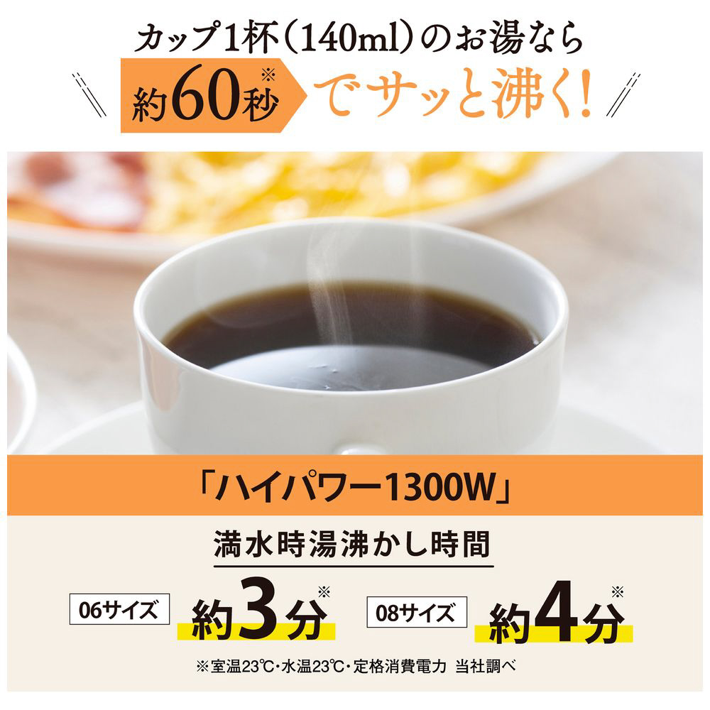 ハイパワー1300Wでスピーディー沸騰、お手入れも簡単です。