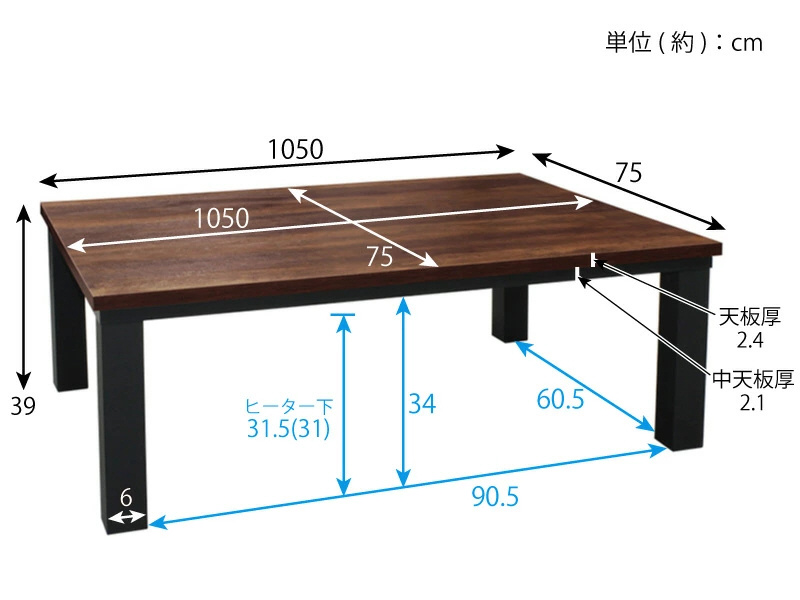 | 商品名 | 105×75 フラットヒーターこたつ YLW-1059MC(MBK) [約70×105cm /長方形] 【864】 |
