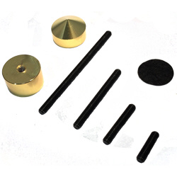 オーディオ機器の天板とラックの棚板の下部を機械的に結合されることで、オーディオ機器とそれらが収納されているラックの棚板の振動を同時に抑え込みます。