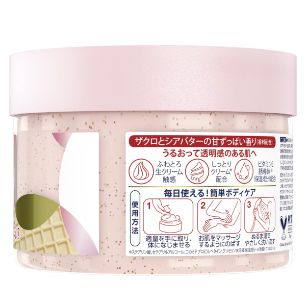 ダヴから、クリーミーなテクスチャーのボディスクラブ誕生!まるでホイップクリームのようなテクスチャー。スクラブ成分配合で、古い角質をやさしく落とすことができます。うるおいのダヴならではの高保湿ミルク配合。