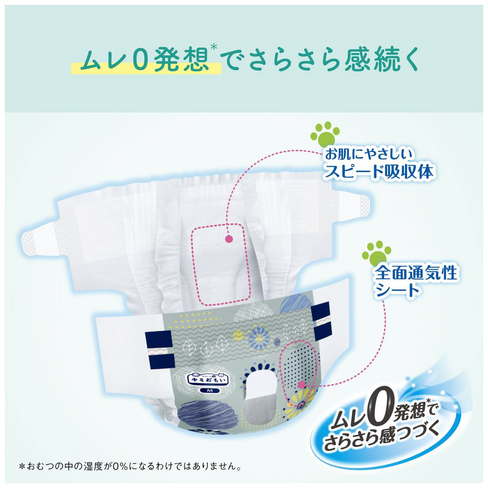 ・スピード吸収体&全面通気性シートでムレにくい。ムレ0発想でさらさら感が続き、お肌にやさしい。