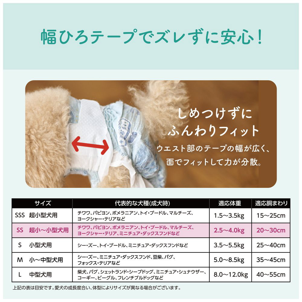 ・SSサイズ。超小〜小型犬用。男の子・女の子共用。