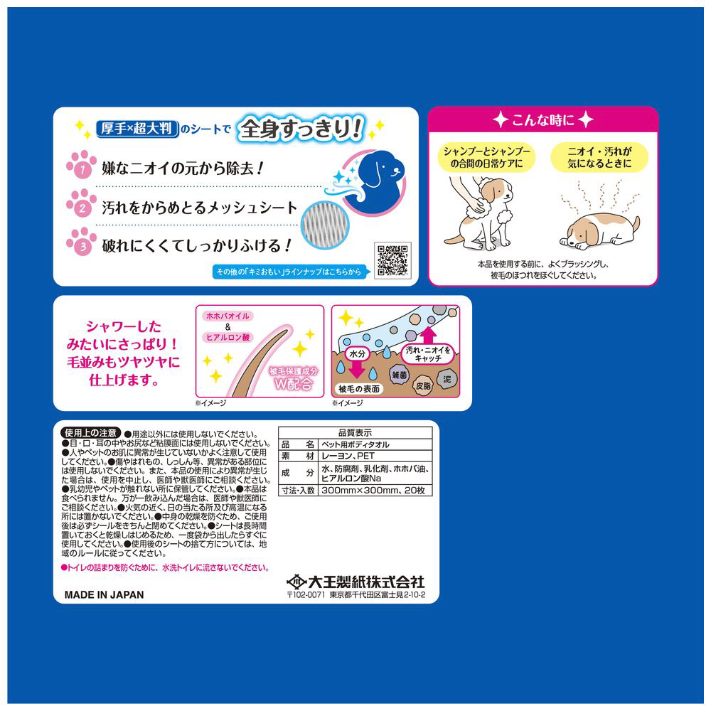 キミおもい 汚れもニオイもからめとる 全身すっきりシート 中型犬用 20枚