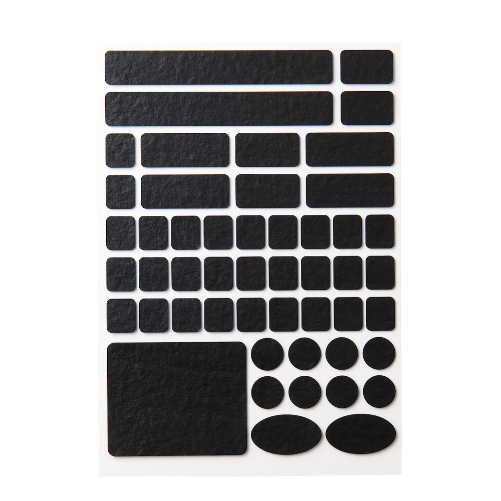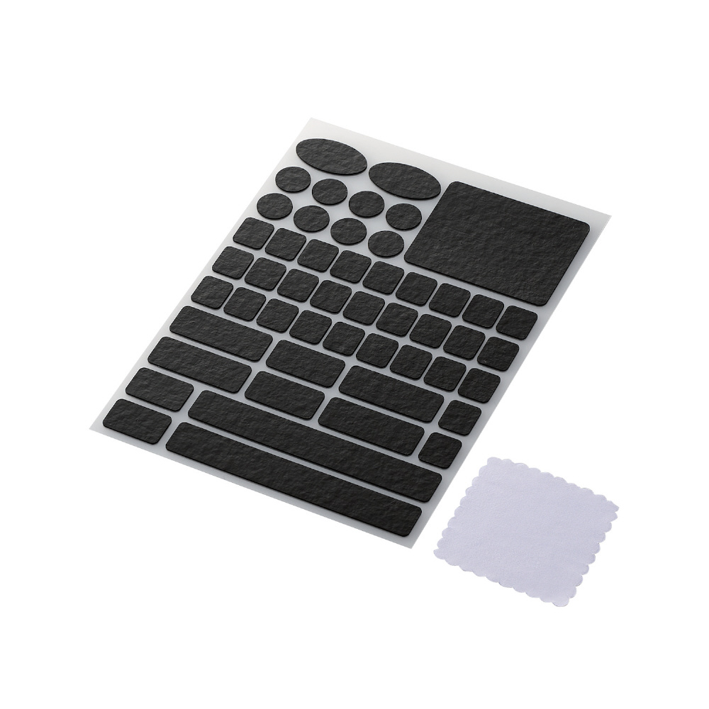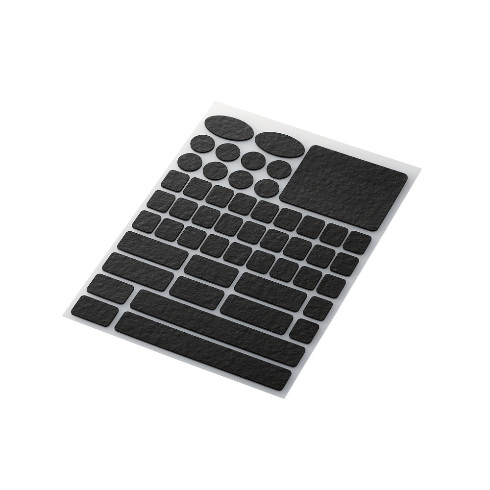 高い加工技術で円形や長方形など汎用性の高い形にカットしているので、マウスだけでなくキーボードなどにも貼り付けることができます。