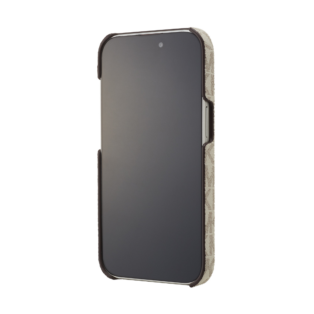 MKシグネチャーのロゴプリントキャンバスに、 コントラストを効かせたストライプをあしらったデザインが特徴の背面タイプのスマホケース です。