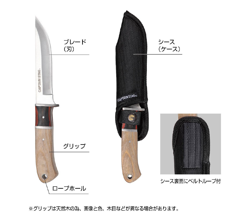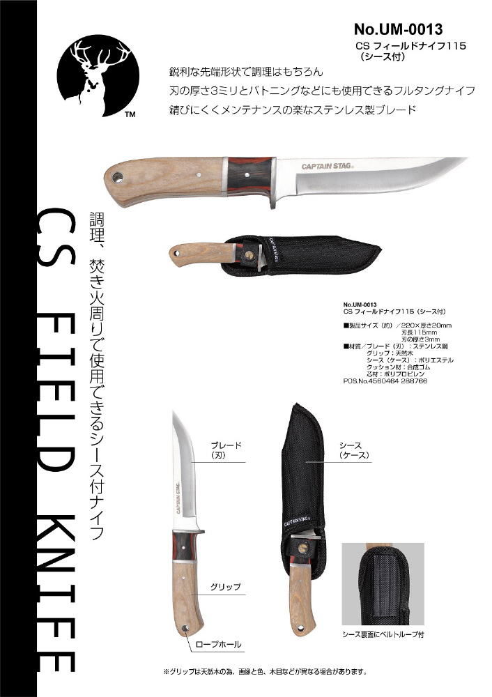 調理、焚き火周りで使用できるシース(ケース付)ナイフ。