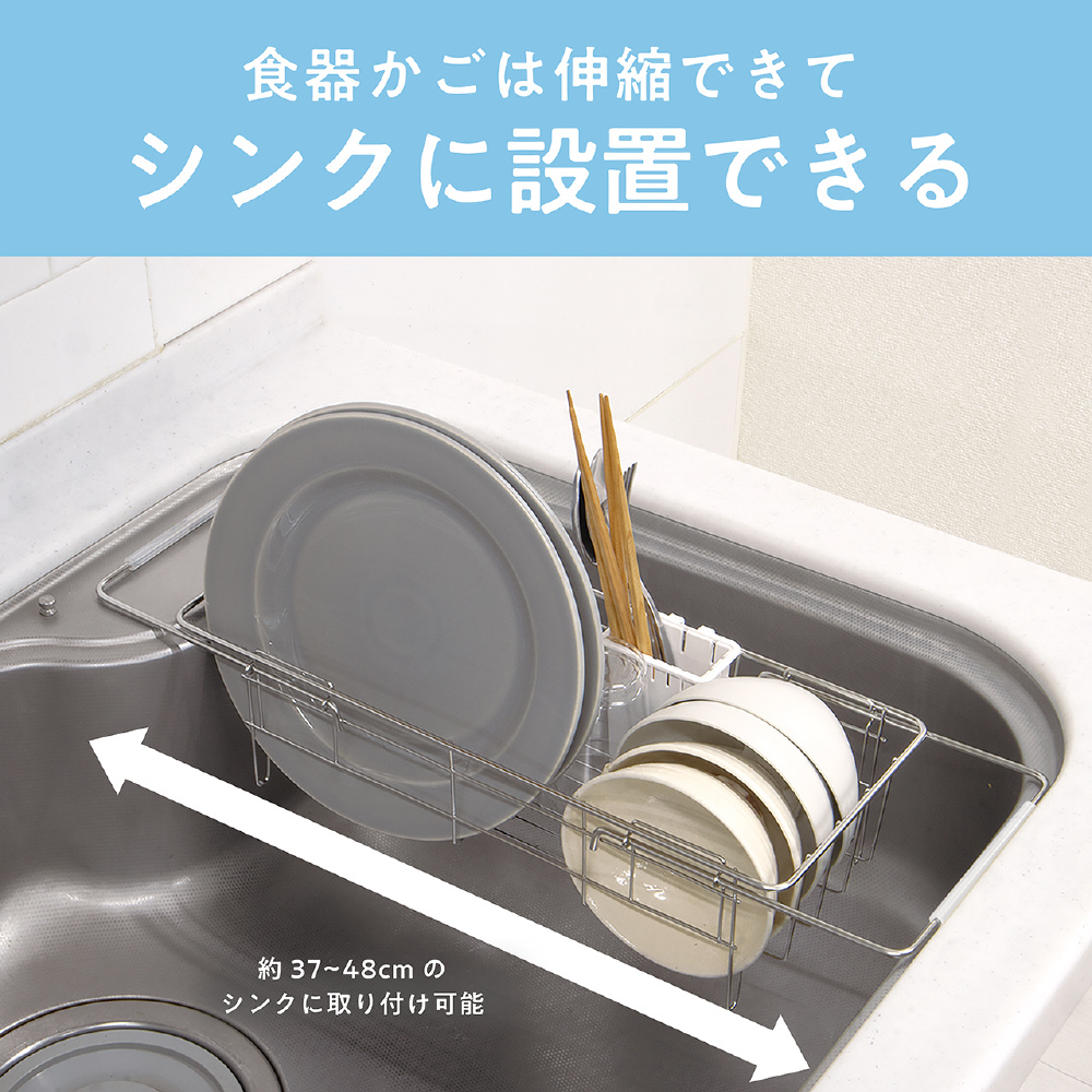 伸縮できるタイプでシンクに設置可能な食器カゴ