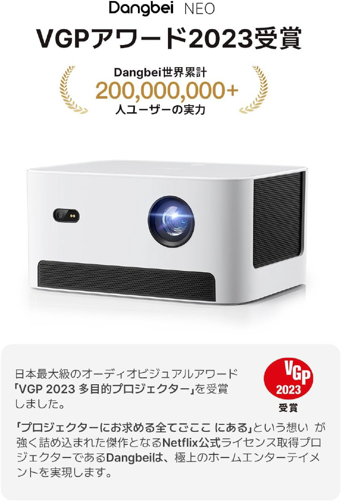 【VGPアワード2023受賞・公式Netflix見られない問題解決】【フル HD1080p・DLP投影技術】【映画館の臨場感・迫力が自宅でも】