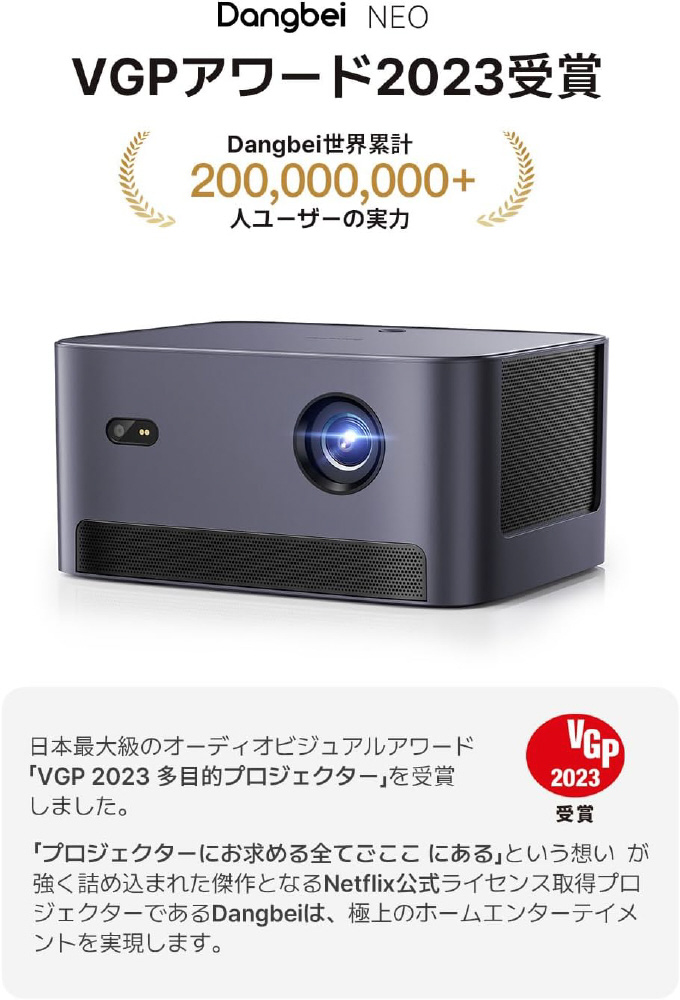 【VGPアワード2023受賞・公式Netflix見られない問題解決】【フル HD1080p・DLP投影技術】【映画館の臨場感・迫力が自宅でも】