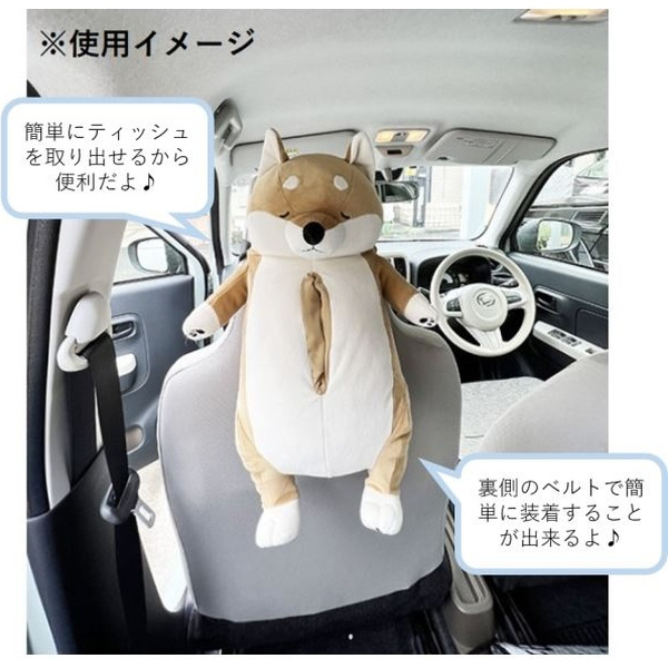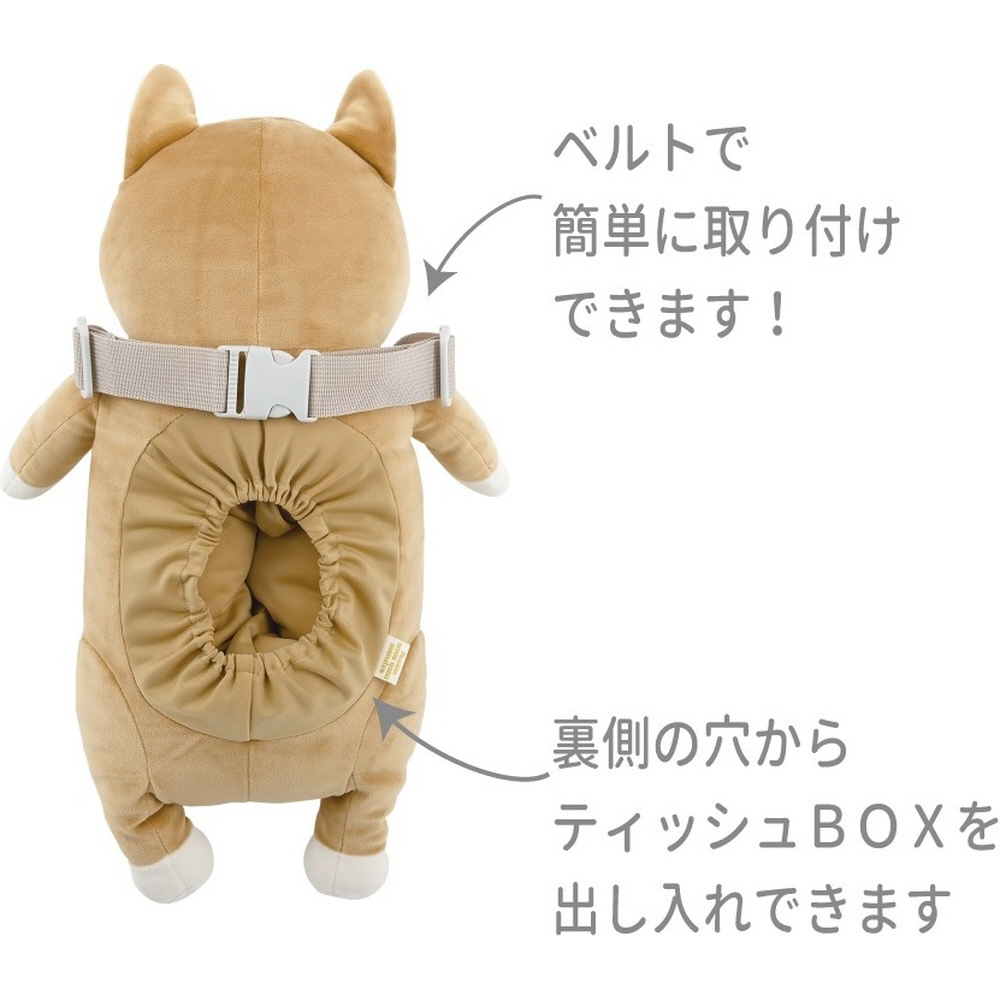 背中側のベルトを使ってヘッドレストに装着できます。箱ティッシュの出し入れも背中側から簡単に出来ます。