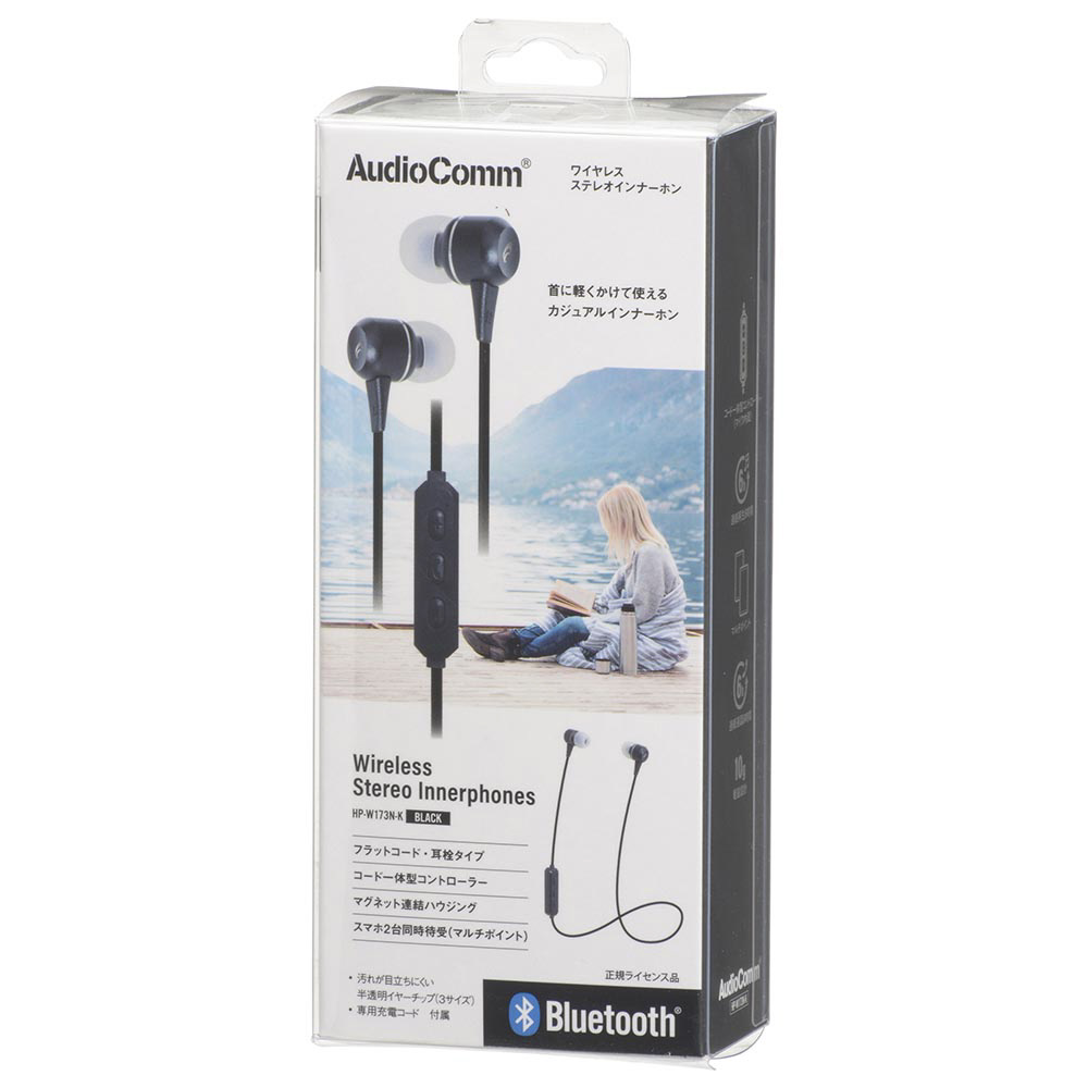 ブルートゥースイヤホン カナル型 AudioComm ブラック HP-W173N-K [ワイヤレス(左右コード) /Bluetooth対応] 【864】