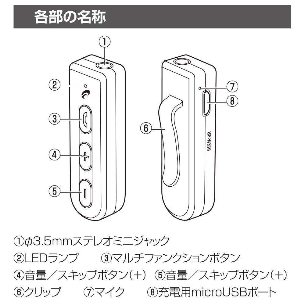 ■ 内蔵バッテリー:充電式リチウムポリマー電池(3.7V 90mAh)