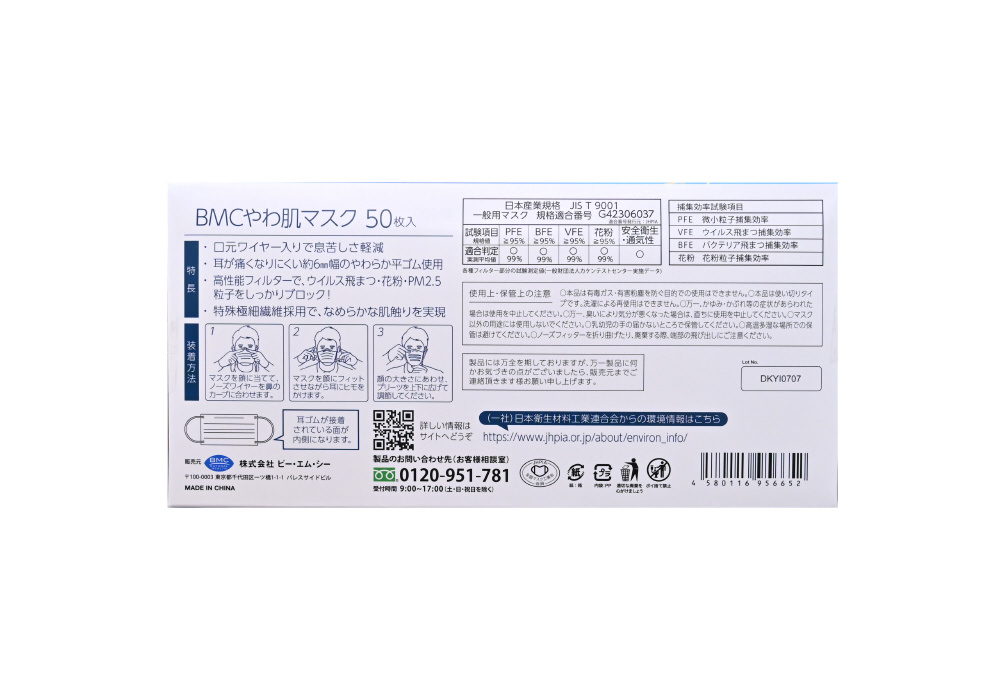 | 商品名 | BMCやわ肌ダブルワイヤーマスクふつう 50枚入 |