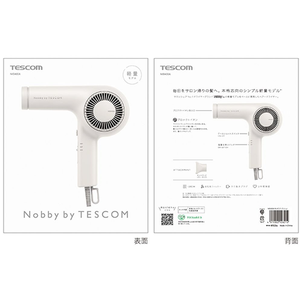 プロフェッショナル プロテクトイオン ヘアードライヤー Nobby by TESCOM(ノビーバイテスコム) ホワイトアッシュ NIB400AW