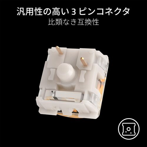 Razer オレンジ タクタイルメカニカルスイッチは、グリーン クリッキーモデルと比較してより静かなアクチュエーションを実現しながら、どのキーストロークも満足のいくタクタイルバンプ (押し込み感) が得られ、クリック音のないタクタイル感を求めるユーザーに最適です。