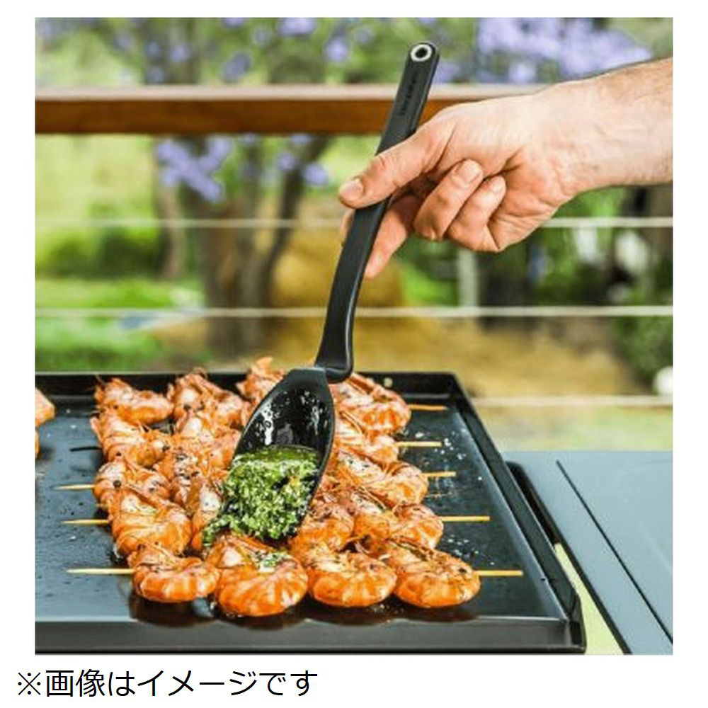 食材にソースを塗る際に活躍する、耐熱シリコンブラシ & スプーンです。柔軟なシリコンヘッドが、ソースを残らずかきだすので、ソースを無駄にすることがありません。